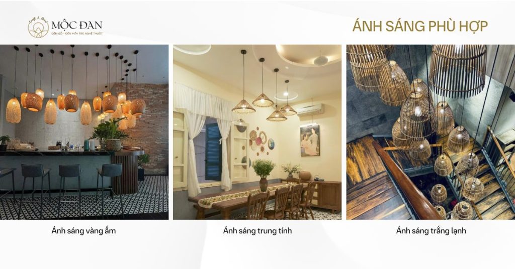 • Japandi, Minimalism: Hợp với đèn gỗ ép hoặc đèn thả hiện đại.