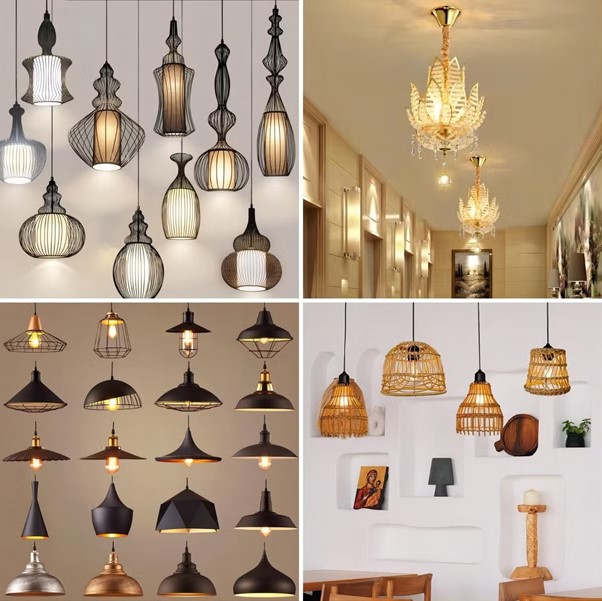 Đèn mây tre đan tạo ra vẻ đẹp tự nhiên, mềm mại và gần gũi, phù hợp với những không gian mang phong cách vintage, bohemian, wabi sabi, hoặc eco-friendly. Trong khi đó, đèn gỗ mang đến sự ấn tượng cho thị giác, đèn kim loại mang tính hiện đại và đèn thủy tinh tạo sự lộng lẫy, tinh tế; đèn nhựa tuy kinh tế nhưng thường không thể mang lại cảm giác sang trọng và sắc xảo như các loại đèn khác.