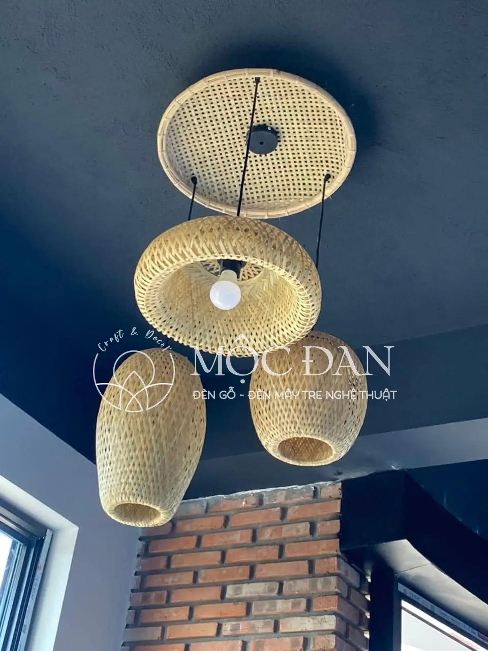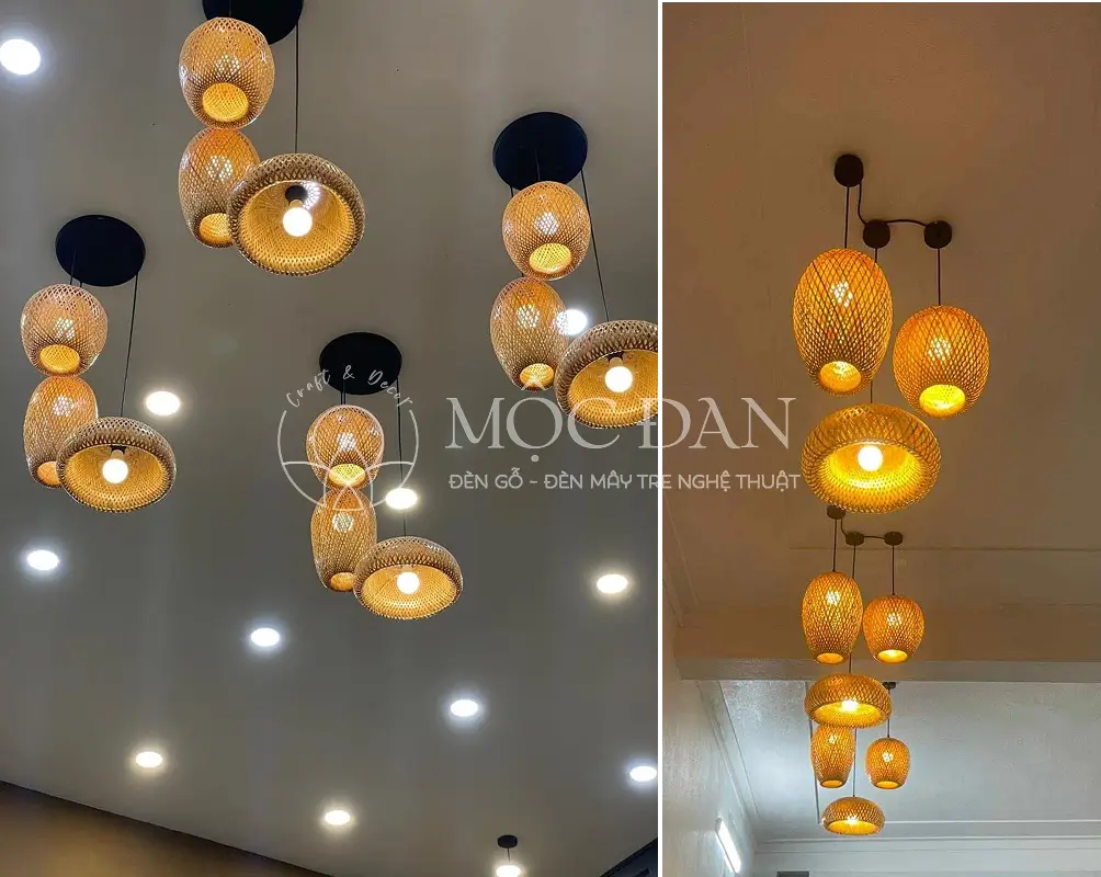 Chùm đèn tre hai lớp bí táo nấm – sự kết hợp hoàn hảo giữa nghệ thuật, ánh sáng và thiên nhiên.