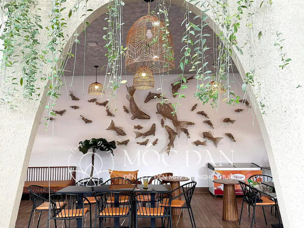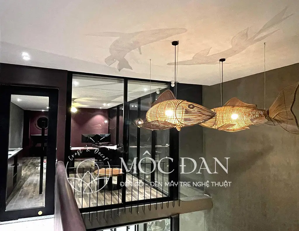 Lấy cảm hứng từ hình ảnh cá Koi uyển chuyển, đèn mây cá Koi Nhật của Mộc Đan Decor mang đến một thiết kế nghệ thuật độc đáo. Sản phẩm được chế tác 100% thủ công từ song mây tự nhiên, an toàn cho sức khỏe và thân thiện với môi trường. Đây là lựa chọn hoàn hảo cho những không gian cần điểm nhấn đặc biệt như nhà hàng, quán cafe, resort, homestay, phòng khách.