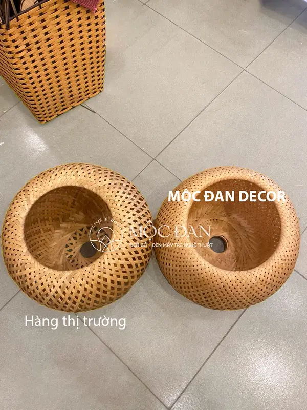 - ⚬ Đèn mây tre đan làm từ vỏ tre 2 lớp là nhóm sản phẩm có độ bền cao nhất, chịu được va đập.
