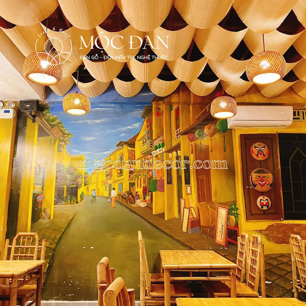 - ⚬ Phù hợp làm đèn trang trí quán cafe, đèn decor quán ăn, spa, trà đạo, khách sạn,…
